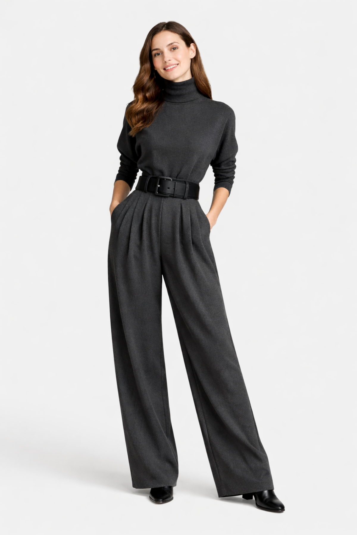 ✅Esthétique minimaliste raffinée : Des lignes claires et une forme unifiée rendent ce vêtement remarquablement attrayant. Le col roulé confère une allure moderne et confiante. Le pantalon plissé ajoute de la profondeur et du mouvement. C'est le choix parfait pour celles qui souhaitent allier simplicité et présence remarquable.