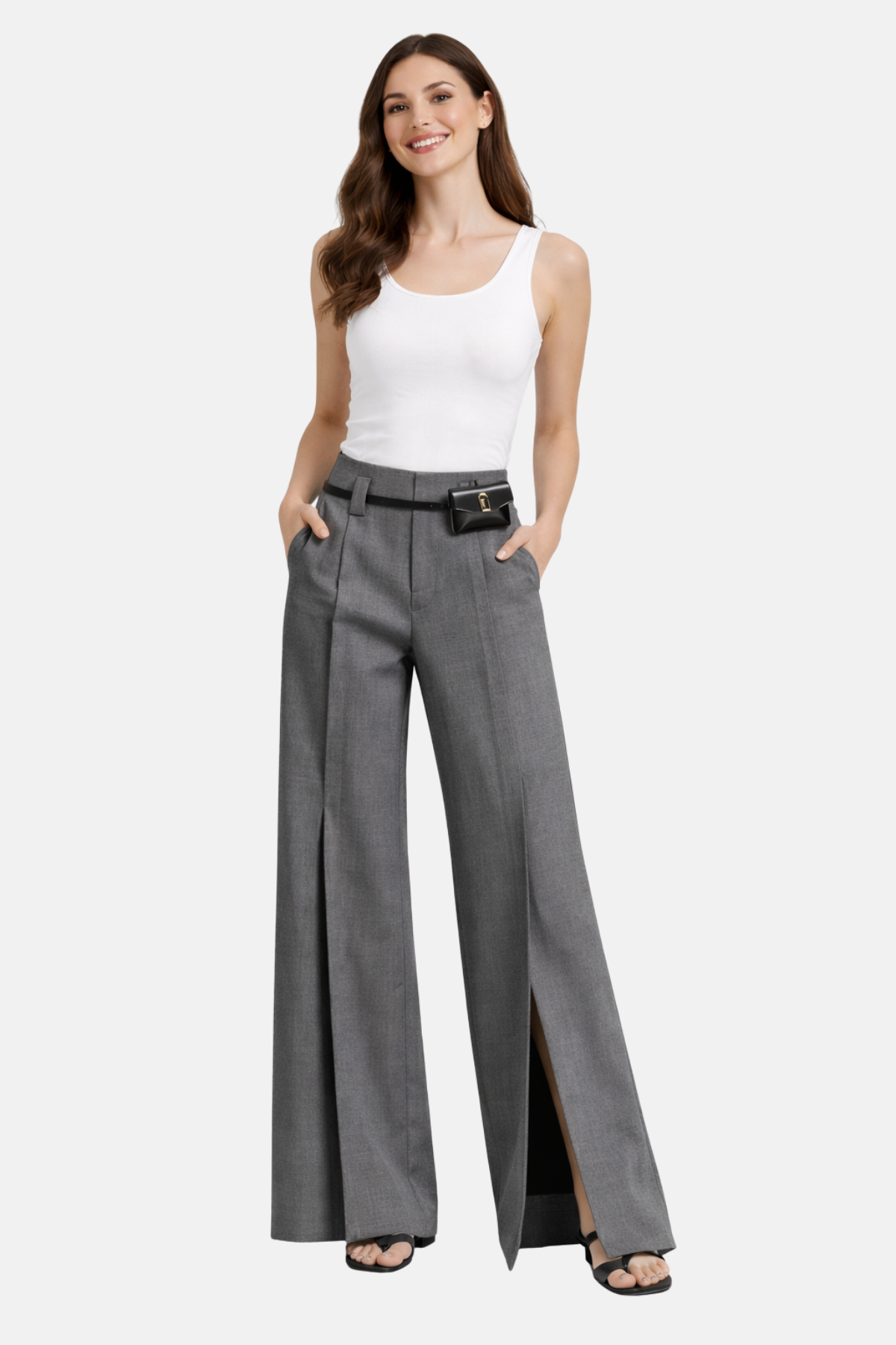 Avec ce pantalon à jambes larges inspiré des podiums, vous obtiendrez un look élégant sans effort. Il présente une silhouette raffinée avec une taille haute et un design chic avec une fente à l'avant. Il est fabriqué dans un matériau doux et sans plis avec des plis structurés pour une finition propre et sur mesure.