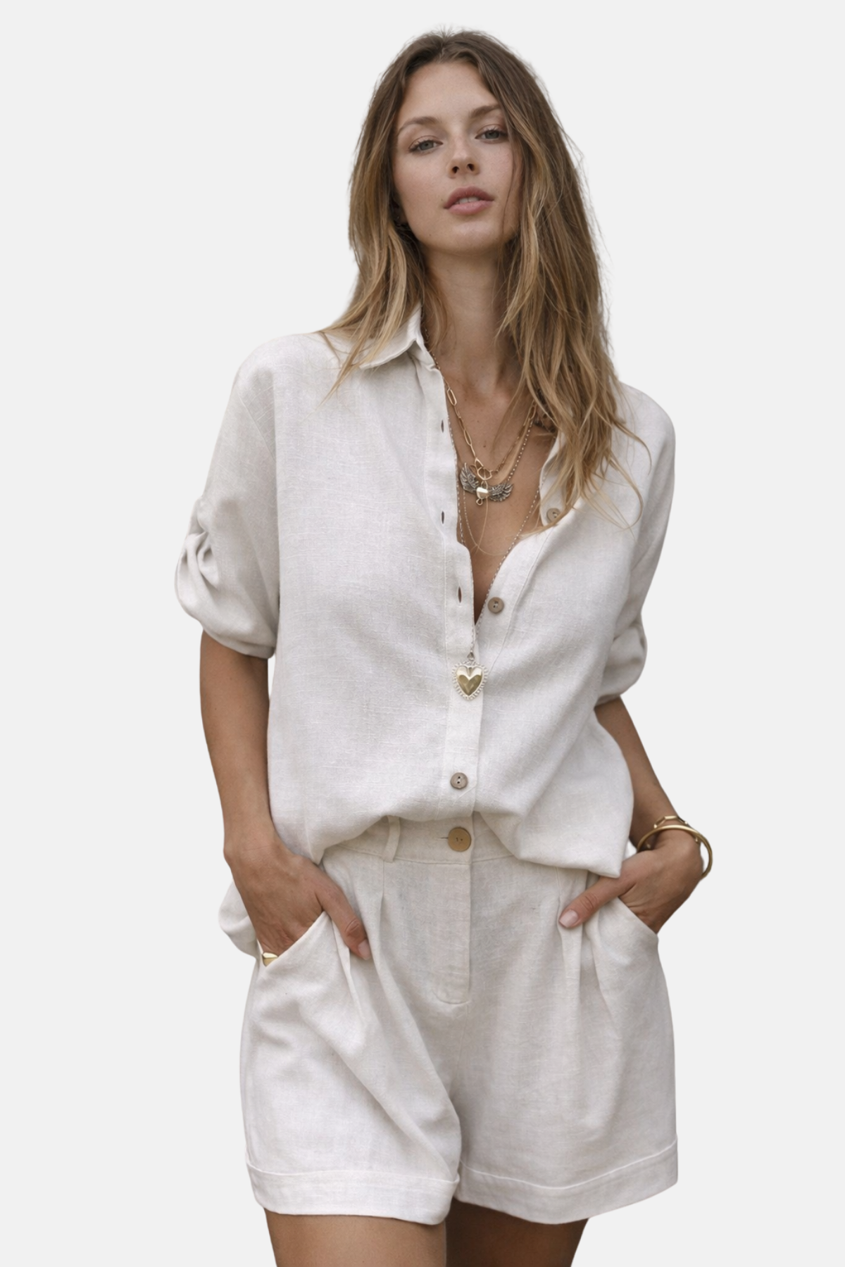 Laissez les démangeaisons derrière vous et profitez de la sérénité de l'été ! Cet ensemble respirant en lin naturel offre une excellente régulation de la chaleur, vous permettant de rester frais et à l'aise toute la journée - un véritable avantage pour tous ceux qui luttent contre les éruptions cutanées et les irritations de la peau. Le design chic et sans effort passe sans transition du jour à la nuit, vous permettant de bien paraître sans renoncer au confort.